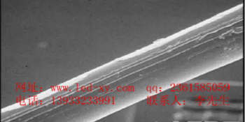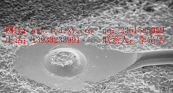 这部分主要是瓷嘴质量问题,使用超过寿命所致;瓷嘴寿命不能以固定“实际打线产量”为准,而是结合焊线效果决定;当不足产量要求时,若已经造成焊线效果不合格(结合高倍率显微镜检验),也应立即更换;另外,人工返工塌线修线不当亦可造成金线刮伤。上图为金线刮痕。